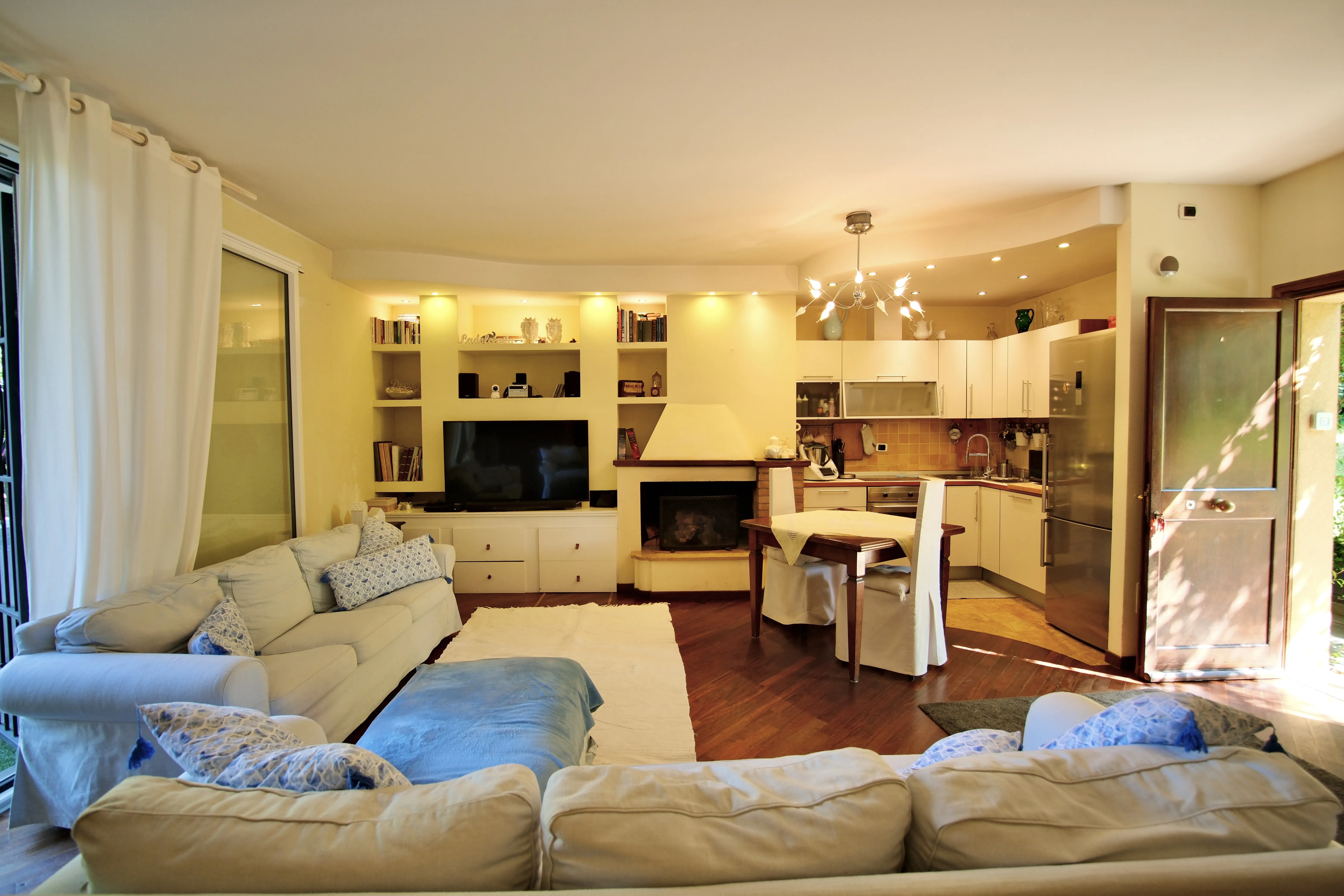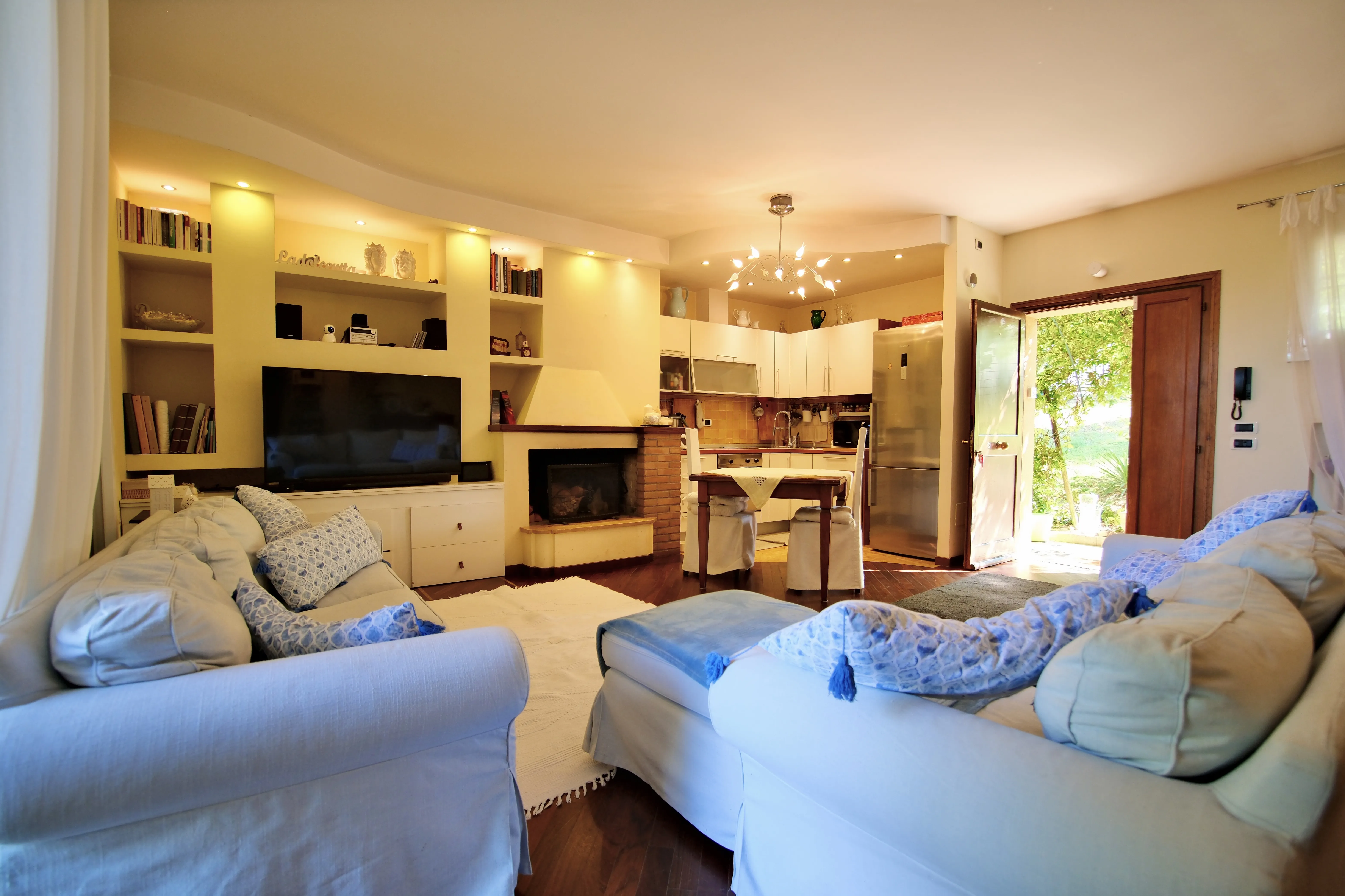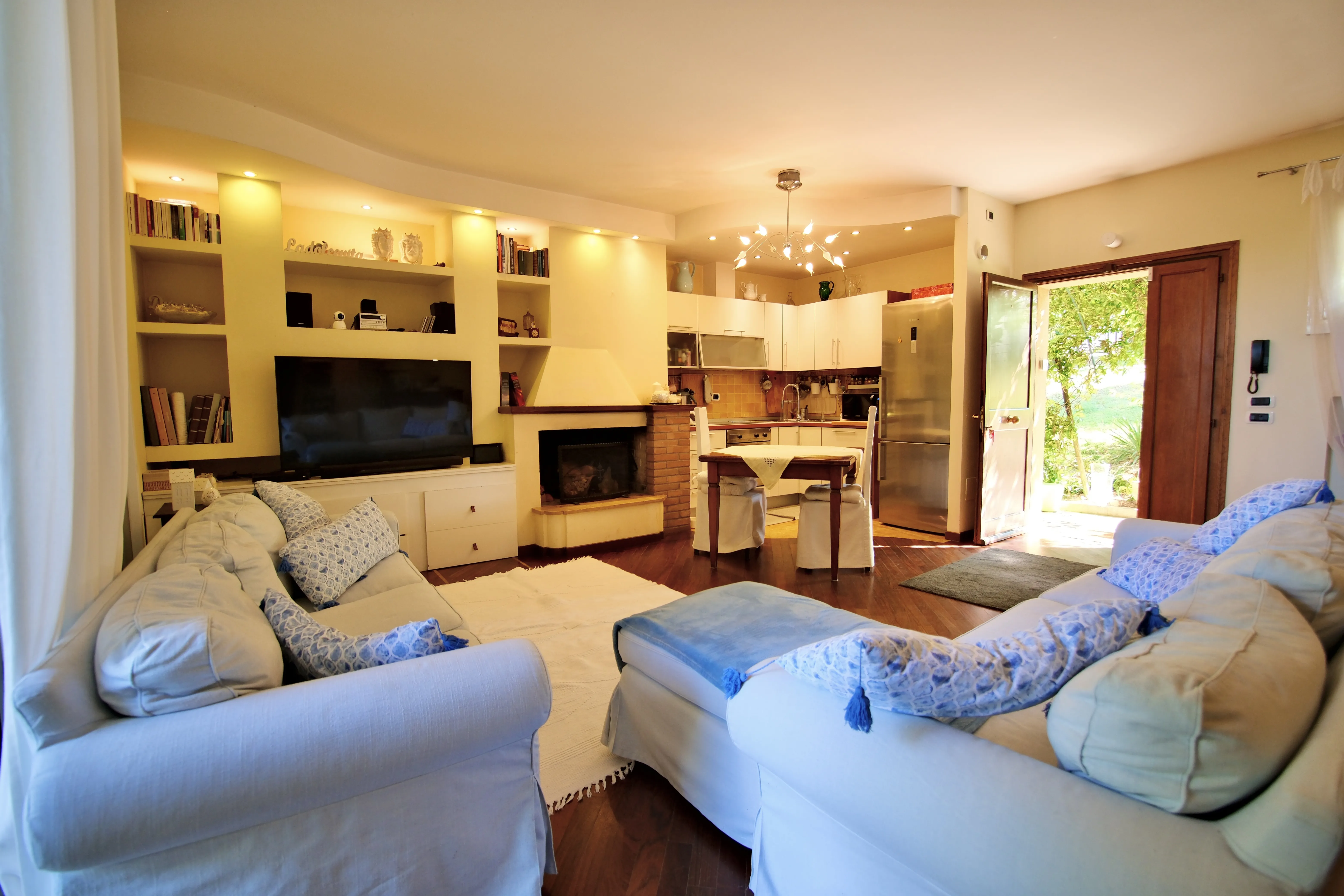 • Piano Terra, ampio soggiorno luminoso dotato di camino e cucina a vista